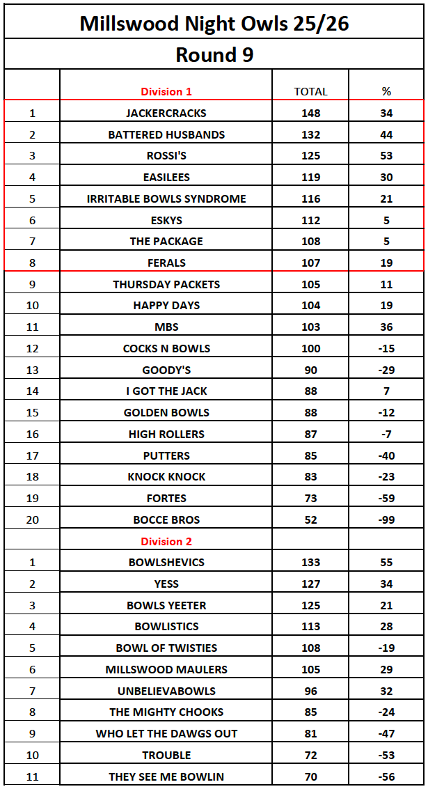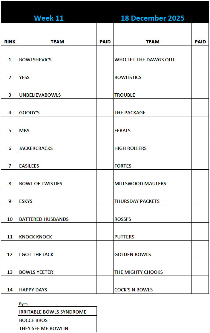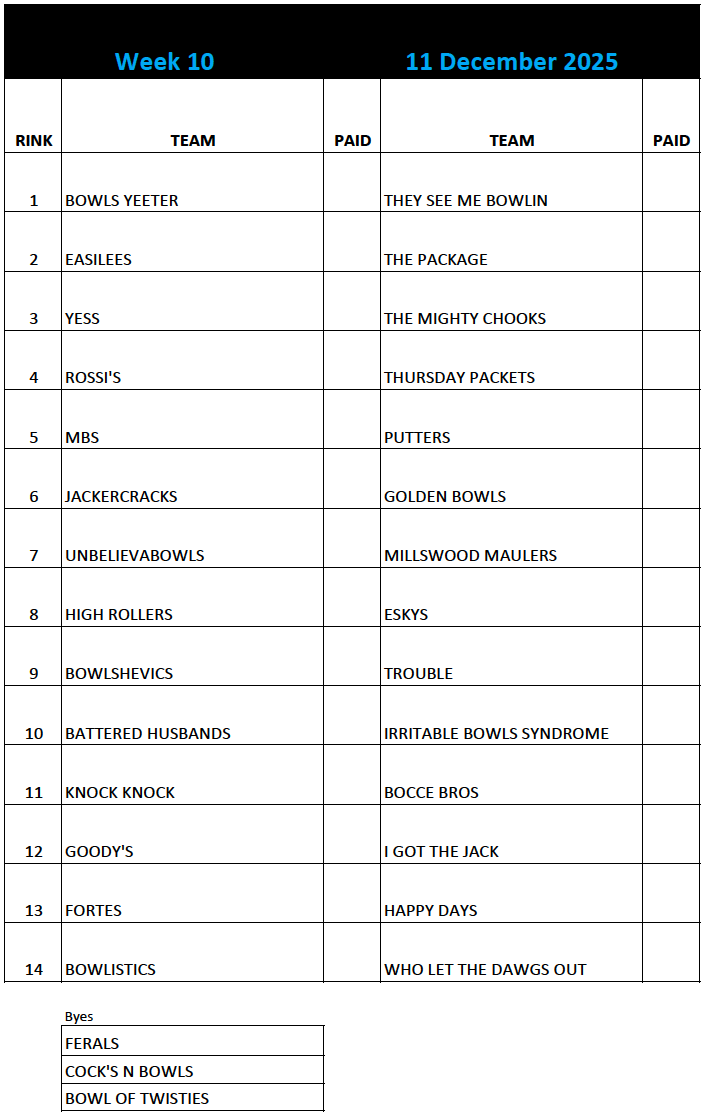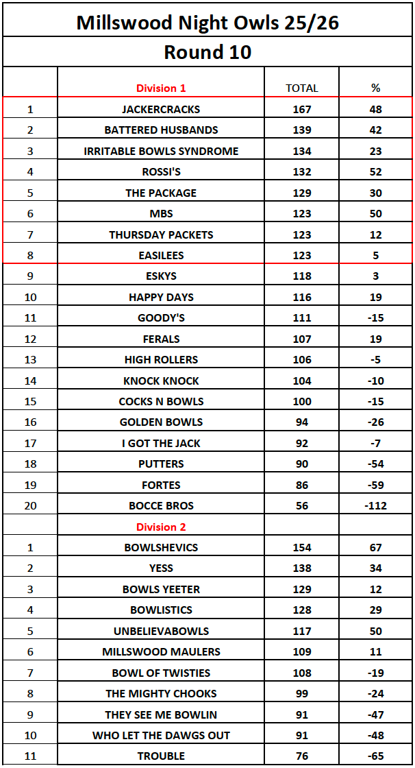 Millswood Bowling Club runs a very popular Thursday Night Owls Competition annually from October to March. Teams of 4 play 15 ends with a finals playoff in March. We currently have a maximum of 28 teams, so competition is fierce.